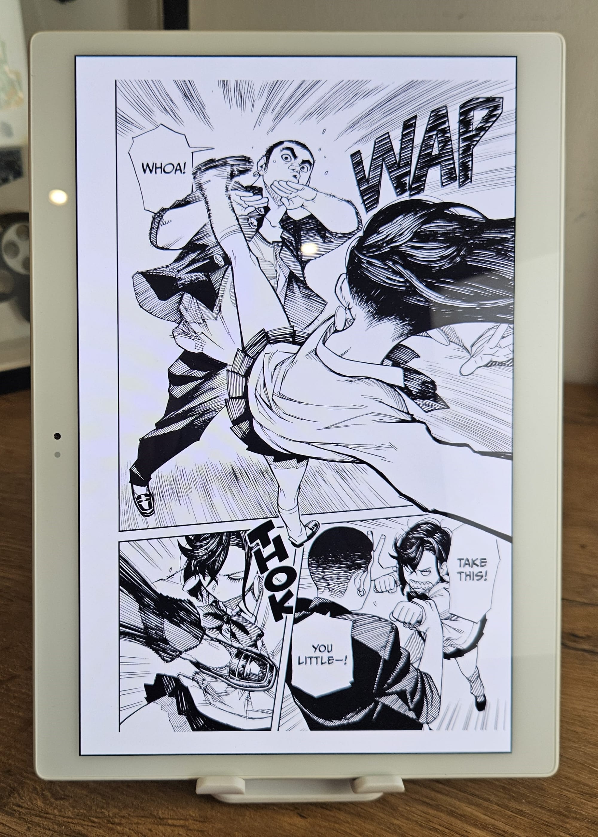 With such a high pixel density and the ability to display colours quite accurately, this is a joy to read books and anime on. The colours of book covers look fantastic, and the detailed panels of Dandadan delight your eyes further.