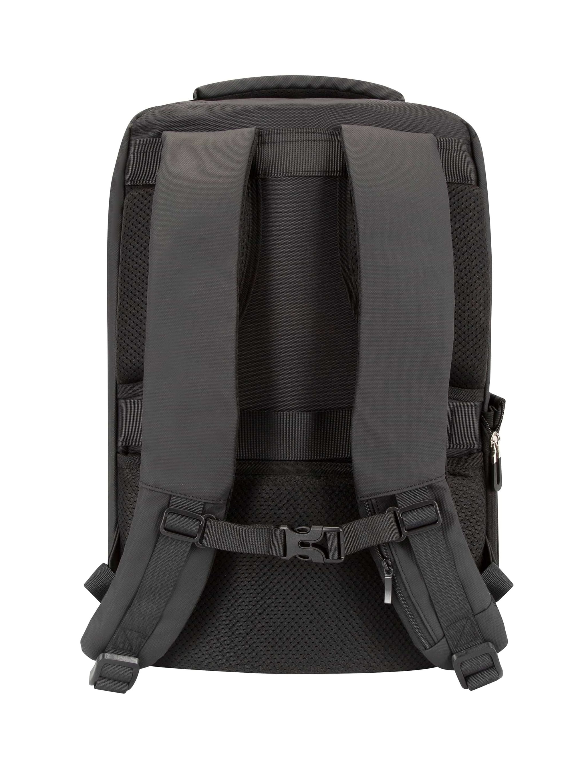 The shoulder straps are padded and adjustable, and come with a clip that fits across your chest for a snug fit. A small compartment in the left side is useful for carrying your access and bank cards, or travel ID. A luggage strap makes it super friendly for travel.